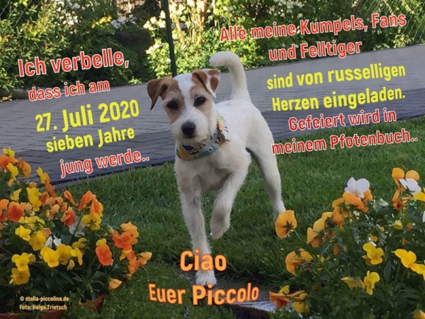 Pfotentapser und Bilder in Piccolos Gästebuch bedanken.